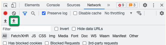 - Click Export HAR (the down arrow icon) to export the file as HAR.