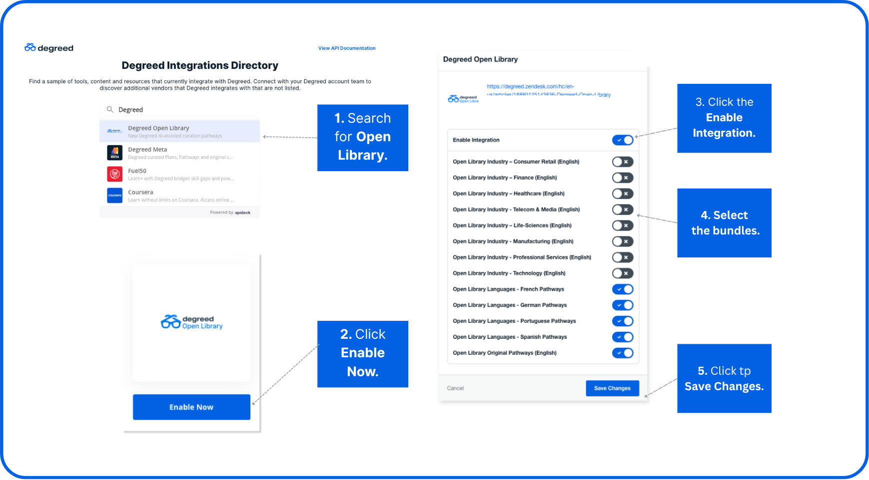 - On the integration details page, click Enable Now to activate the Degreed Open Library integration.