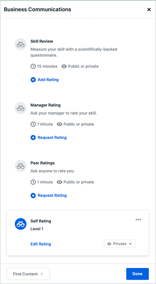Puedes controlar la visibilidad de las calificaciones de habilidades que hayas completado y compartirlas públicamente con otros aprendices que vean tu perfil.