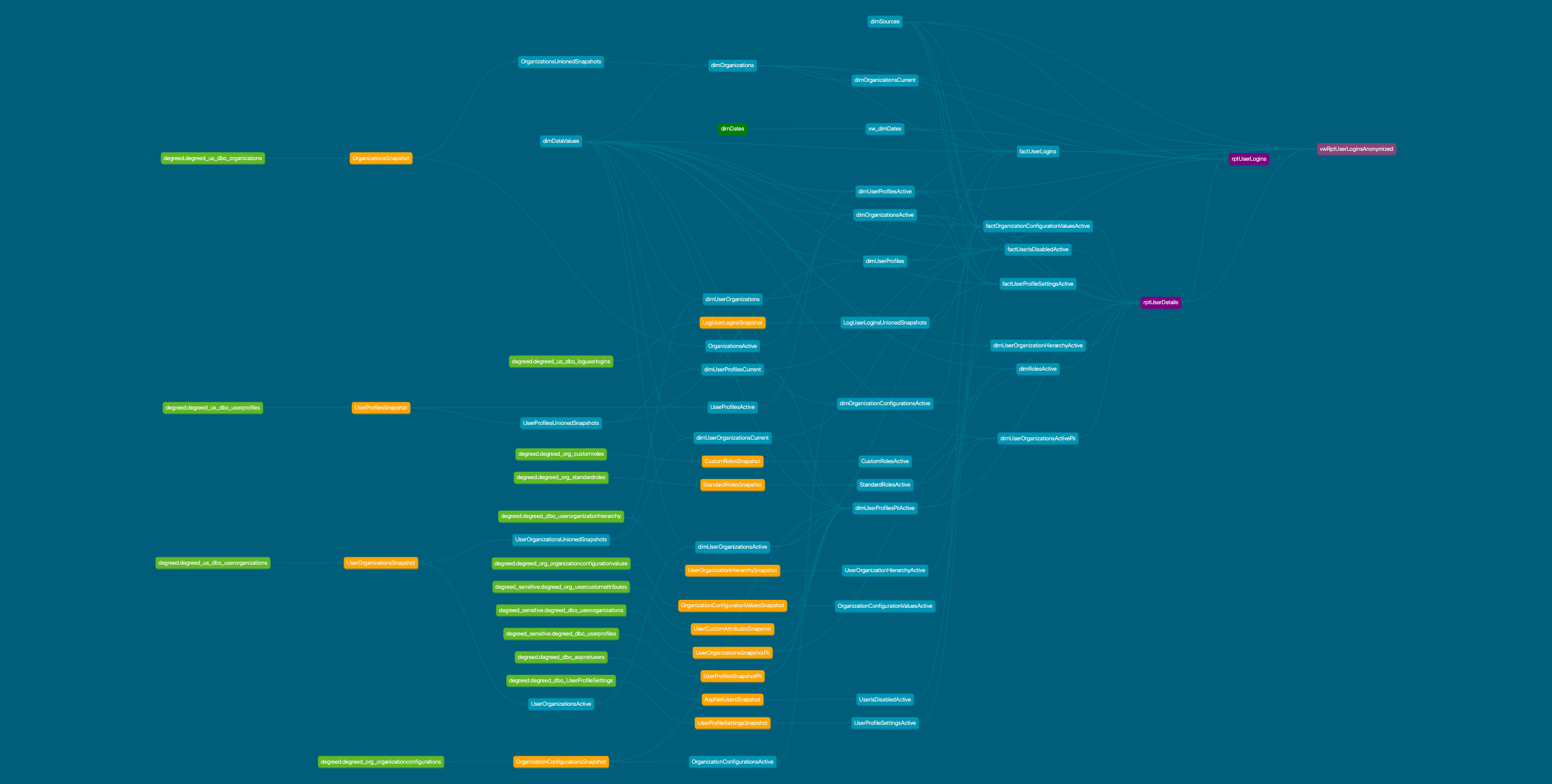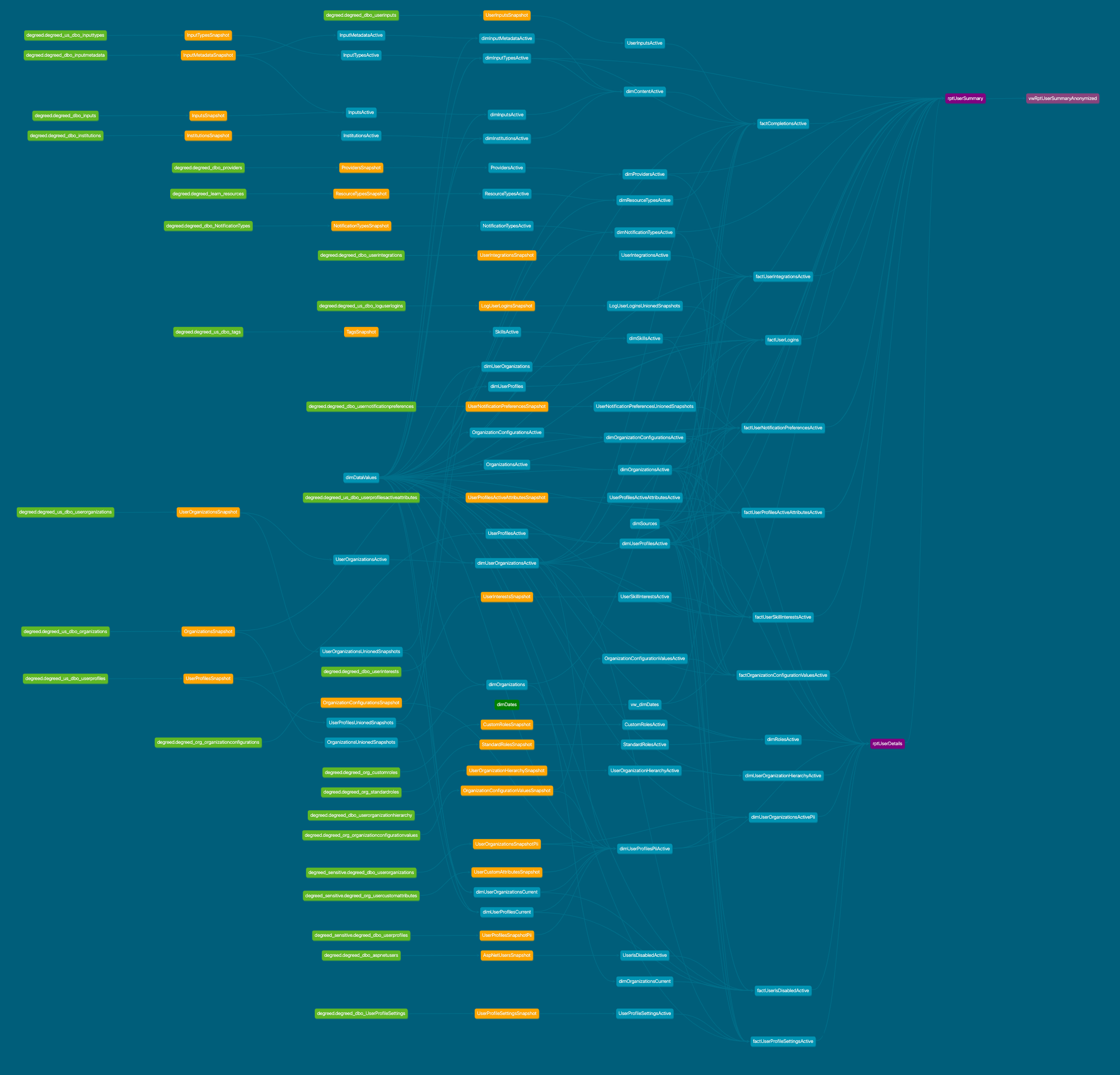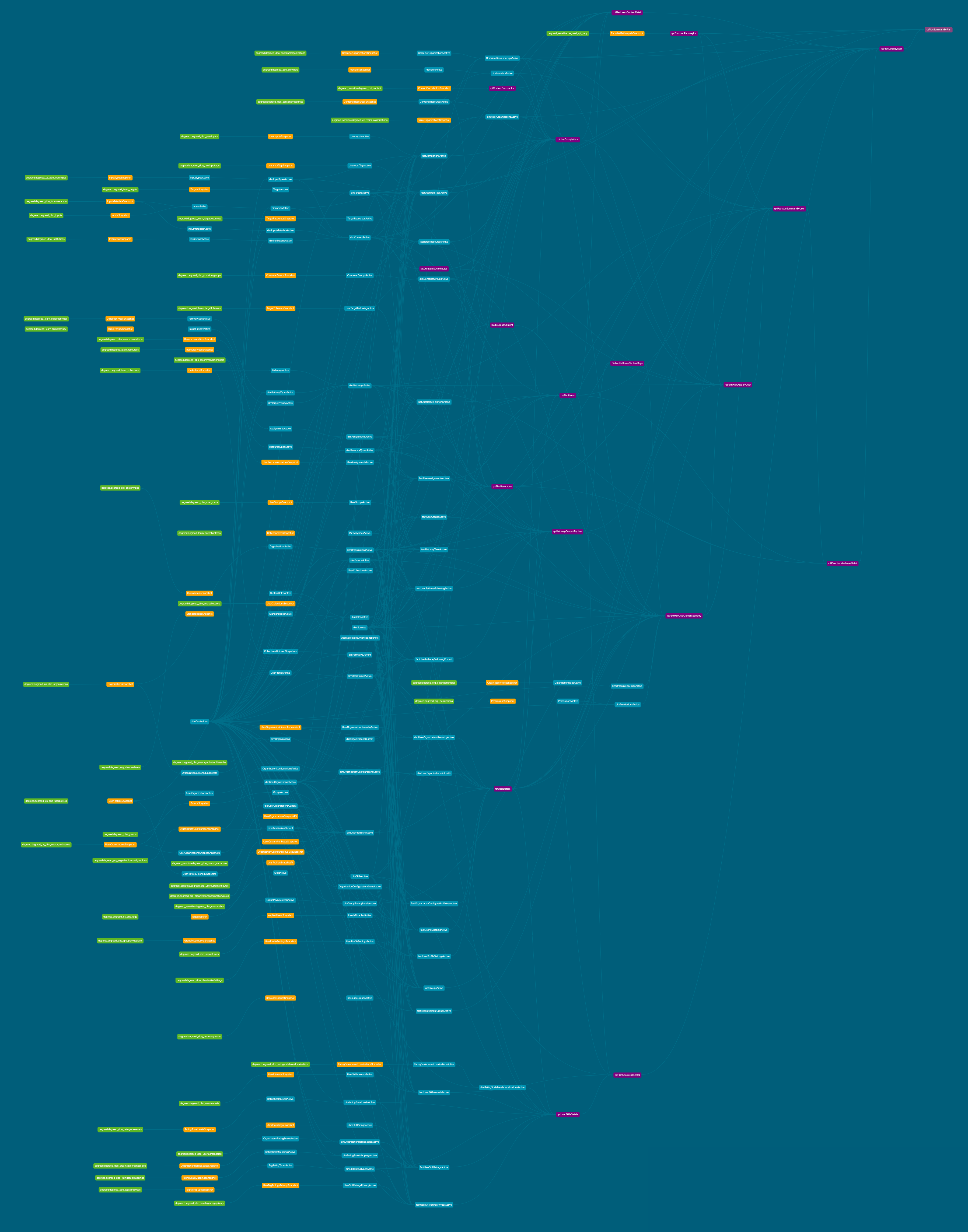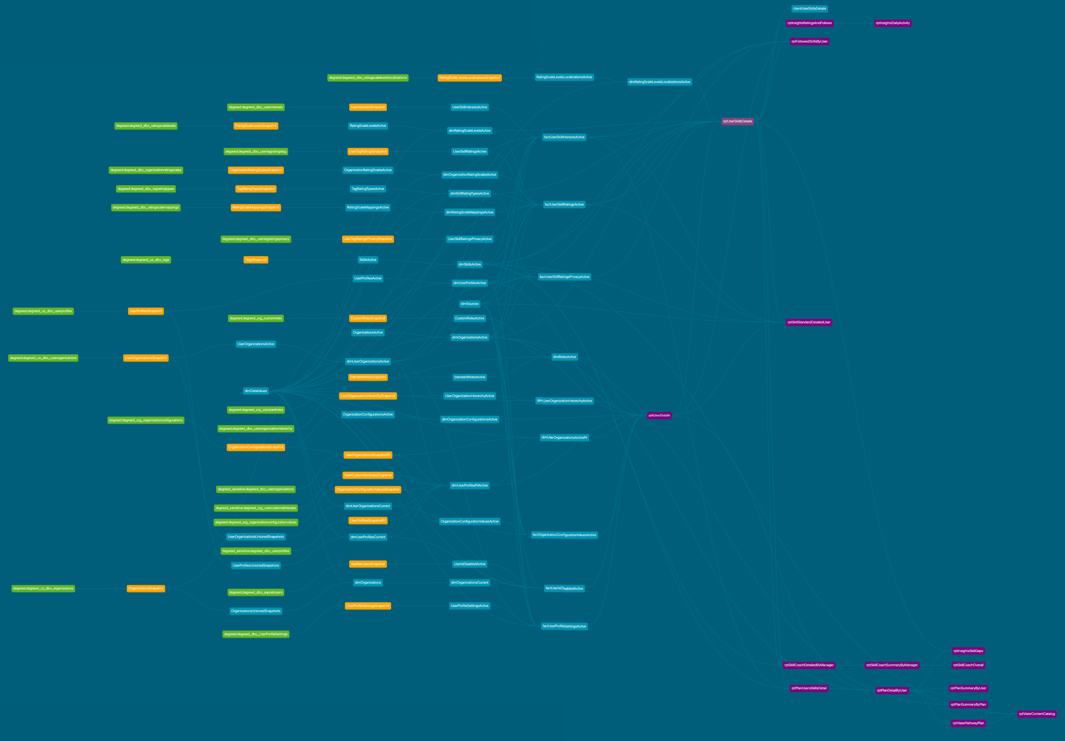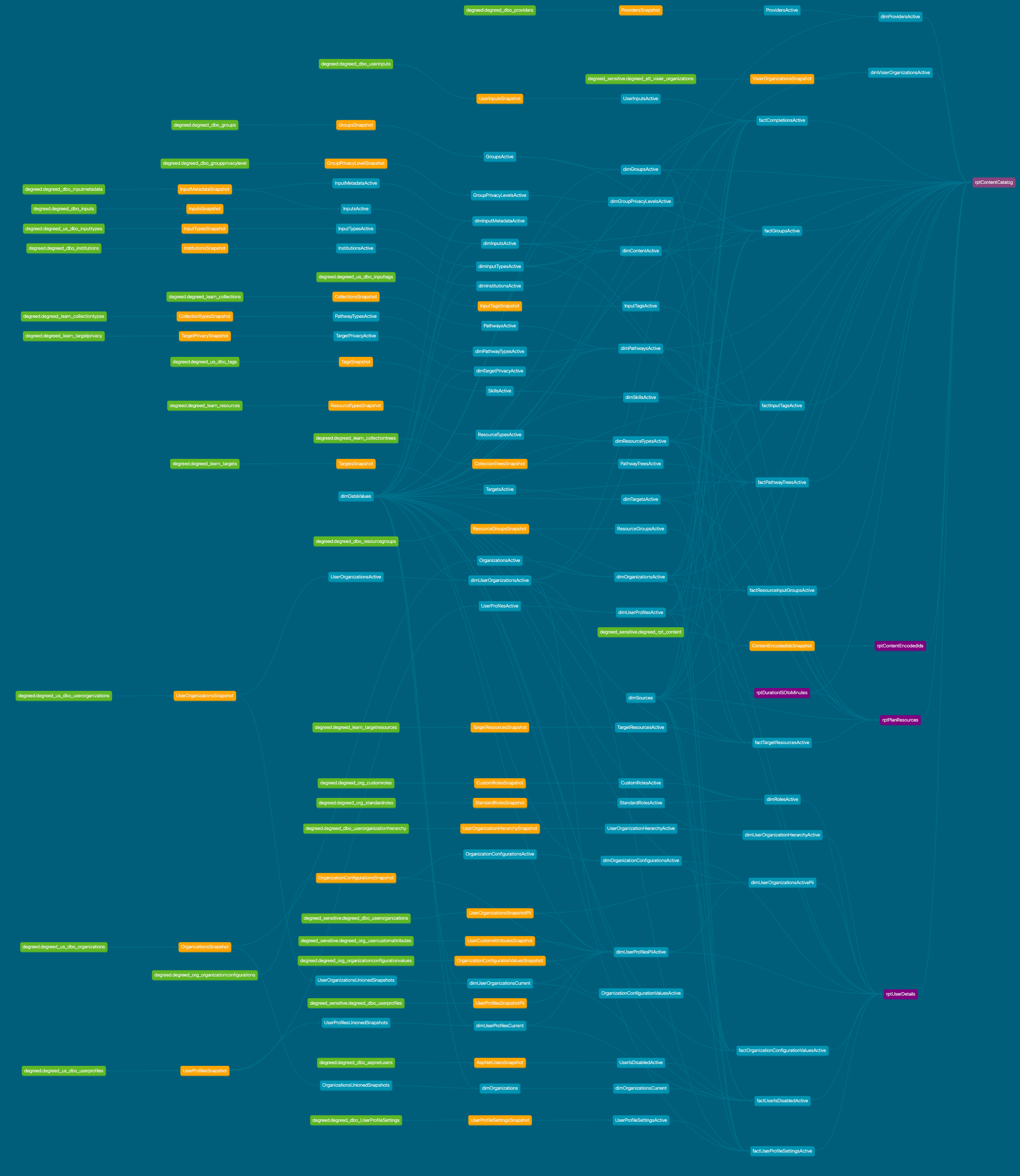 - Linhagem: a linhagem de cada tabela, mostrando suas dependências, fontes e relacionamentos com outras tabelas no ecossistema do DDC. Clique na imagem para abri-la em uma nova aba e ampliar.